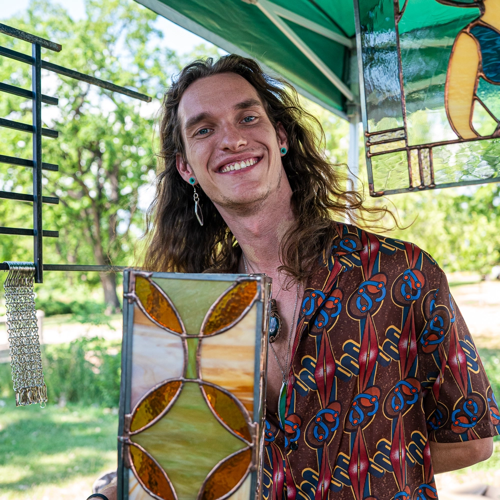 I’m Anthony Adamsky and I founded Adam Sky Glass in 2021! I currently work at the Globeville Riverfront Art Center. As a self-taught artist with a background in architectural design, I bring a uniquely contemporary approach to the historical craft of stained glass.